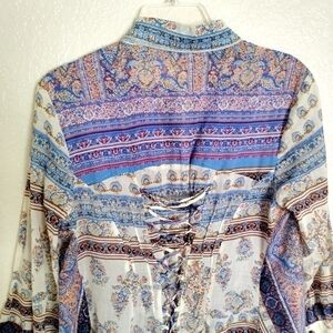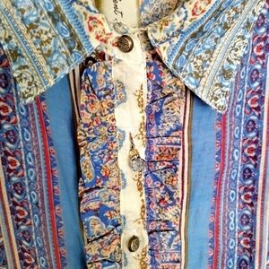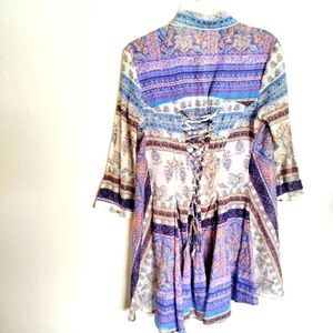 Aratta Silent Journey Tunic Top Boho Chic Floral Stripe My Memory sz S
