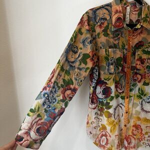 Aratta Silent Journey Women's Medium Floral Multi Color Trim Velvet Bohemian