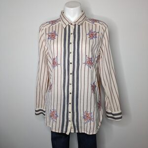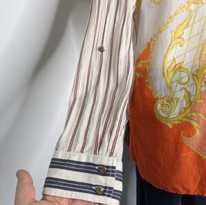 Aratta Silent Journey white orange mixed print long sleeve button up shirt M