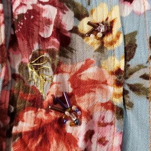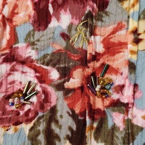 Aratta Silent Journey button-up floral shirt, with an beaded embellished front and a velvet collar. These were sold at Anthropologie. Nordstroms & lots of independent boutique stores