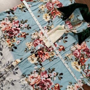 Aratta Silent Journey Floral Flower Blouse Button Down Shirt Velvet Collar Small