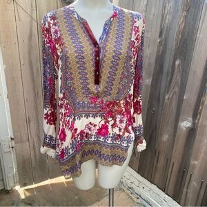 Aratta Silent Journey Womens Printed Tunic Size M Floral Geometric Split Hem