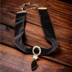 Aravir Black Velvet Choker & Earrings Set – Rhinestone & Black Faceted Stone
