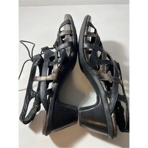 Step out in style with these chic black strappy sandals. Perfect for any occasion, these sandals offer both comfort and elegance.
