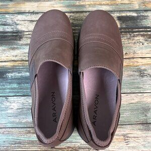 Aravon Loafers Womens Size 7D Brown Leather Slip On Comfort Shoe Round Toe
