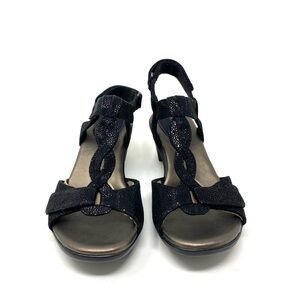 Heel height: 2 1/2 inches Supple, full-grain leather uppers combines with graceful leawood wrapped heels Soft, breathable micro suede linings feel comfortable in any weather EVA and Ortholite® anatomically molded footbed with arch support reduces shock and enhances comfort TR outsole features a cushioned pillow-y forefoot to invigorate your every step Steel shank provides lateral stability and underfoot support Size 7.5B New in box