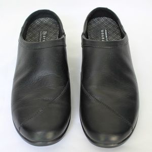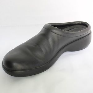 Aravon Women Sz 9.5 Black Leather Slip-On Mules