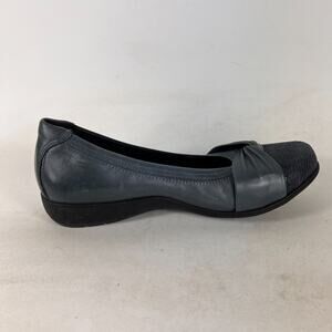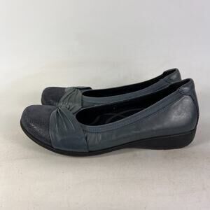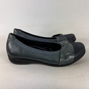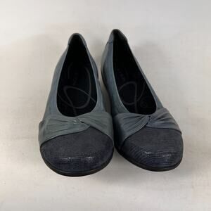 Aravon cap toe wedge women's size 6.5 blue leather minimalist slip on flats shoe