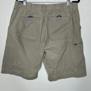 Excellent condition. Inseam is 11 inches and the rise is 10 inches and the size is 34. All items have been cleaned and comes from a smoke free home. Nice cotton shorts.