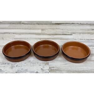 Arbresa Multiuse Clay Dish Set (3), Terra Cotta Spanish Pottery, Stackable. This is a set of 3 Arbresa ramikin dishes. There is an additional dish that is unbranded that will be included at no cost. See last 2 photos.