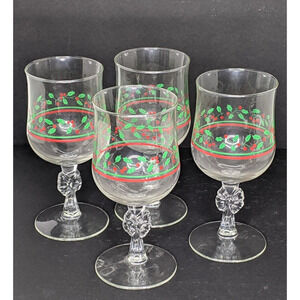 Arby's Holly Berry Bow Stem Wine Glasses Christmas Vintage 1980's Set of 4