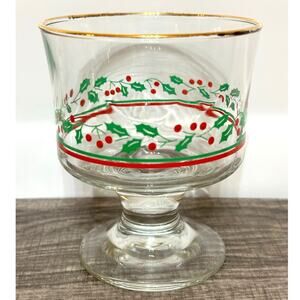 Arby's Holly Berry Vintage Gold Rim Footed Swirl Dessert Cups-Set of 6