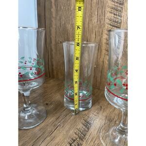 This listing is for four Arby’s Christmas glasses two stem ware pieces and 2 water tumbler style. Holly berry pattern