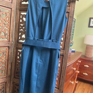 Arc & Co. Sleeveless Navy Belt Dress With Pockets & Open Back. Size Small.
