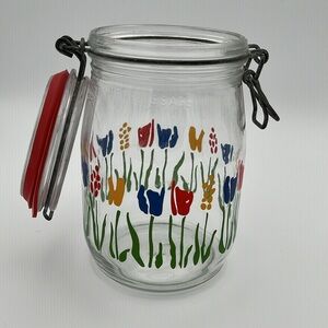 Arc France 1L Tulip Design Vintage Glass Canning Jar with seals. Good vintage condition-see photos. Cute tulip design! Mid- century or country kitchen vibe.