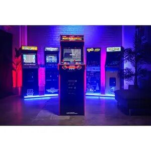 Relive the arcade era with the Arcade 1Up Mortal Kombat Machine. Includes 14 classic games. Bold black and red design.