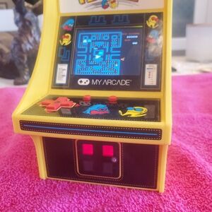 Enjoy classic gaming with the Arcade Pac-Man Mini Arcade Machine. Featuring a vibrant yellow design, this console brings nostalgia to your fingertips. Perfect for any gaming enthusiast.