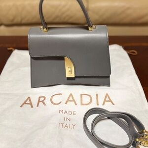 Arcadia Arco Small Satchel - Lead Grey Made in Italy. Carried on with handles or wear as a crossbody body with the strap like new. rarely used. Dimensions: L. 9.50 × H. 7 × D. 4 inches / L. 24 × H. 18 × D. 10 cm