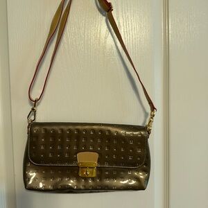 Elegant leather bag with sleek design. Features branded interior lining and zip closure.