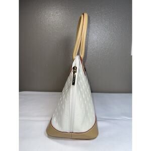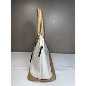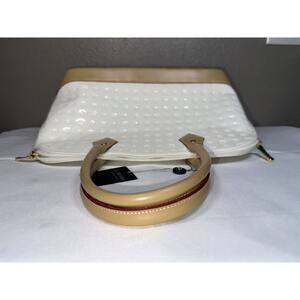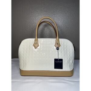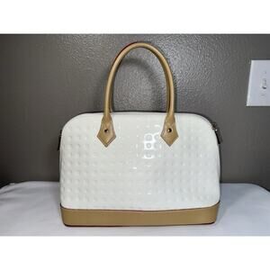 ARCADIA Made In Italy Patent Leather Dome Satchel W Vacchetta Trim White Natural Handbag