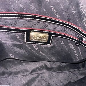 This Arcadia purse is a blend of elegance and practicality. The bold animal print center panel is tastefully complemented by the luxurious embossed dark leather. Red stitches add a pop of color, enhancing the purse’s overall appeal. The metal buckles not only secure the handles but also add a touch of sophistication. Whether you’re heading to work or attending a gala, this purse is sure to elevate your ensemble.