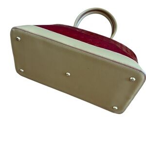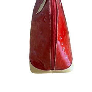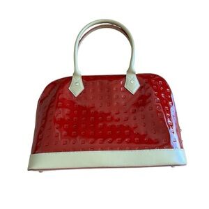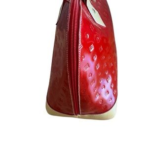 Arcadia Red Genuine Patent Leather Domed Large Purse Handbag Logo Italy