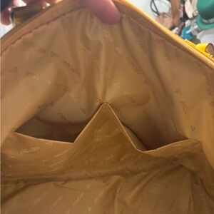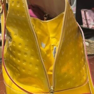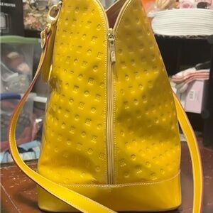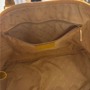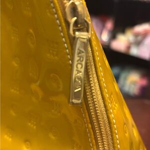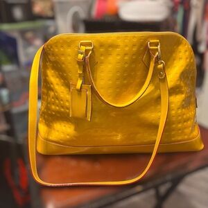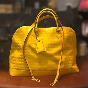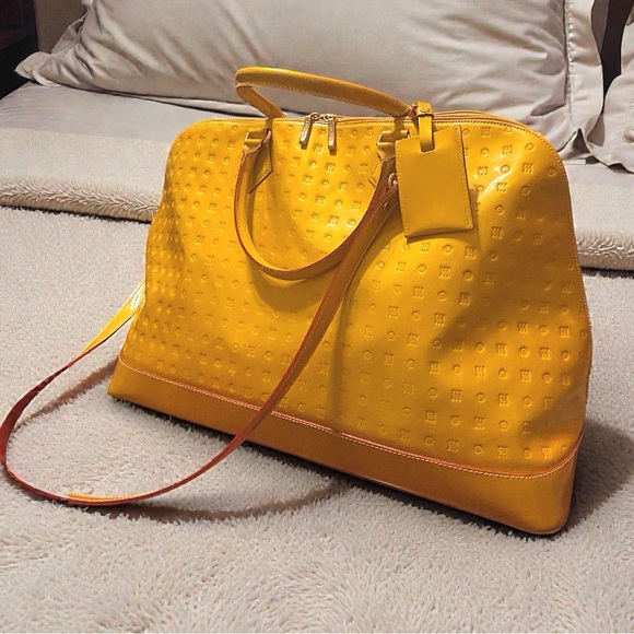 Brighten your style with this stunning mustard color designer weekender. Arcadia is known for their stunning detailed embossed print, patten leather exterior, with a beautiful vibrant interior. Great for a weekend getaway - lots of room! Would also make a great “carry-on” while flying.