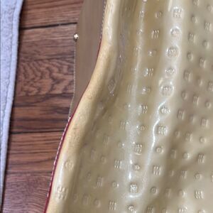 This Arcadia tote bag in a vibrant yellow hue is crafted with a structured rectangular shape, offering both style and functionality. The bag features a textured leather-like material, complemented by gold-toned hardware for a touch of elegance. Its spacious interior and sturdy top handles make it an ideal choice for everyday use.