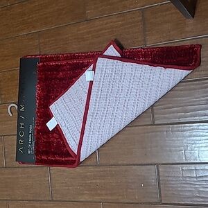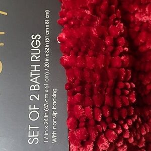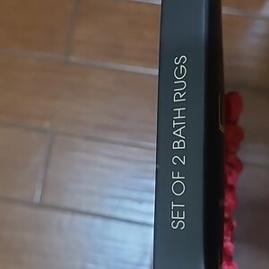 2 Bath Rugs, Red, non-slip backing, 💯% polyester, machine washable/cold gentle cycle, dryer/low