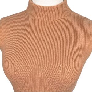 Excellent used condition. Arch4 London Celia Sweater Dress in golden coral. 100% cashmere. Mock neck. Sleeveless. Ribbed. Dry clean only.