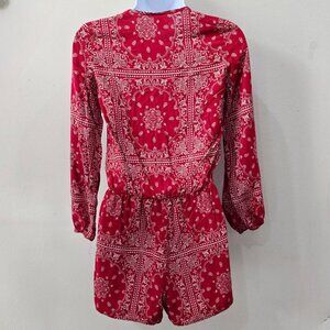 Archaic ✦ Red Paisley Romper ✦ Long Sleeve V-Neck w/ Tie Detail Boho Rebel Style