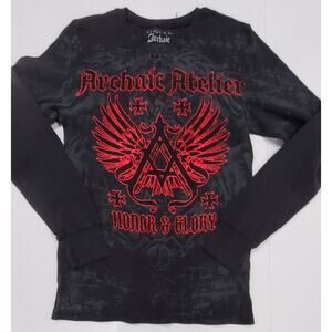 Archaic Shirt Unisex Sz L Black Honor & Glory Punk Grunge Cross Wings Y2k Metali