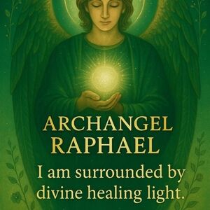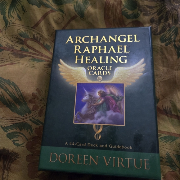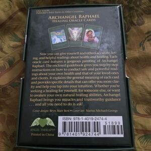 Archangel Raphael Healing Oracle Cards with guidebook. Features a mystical design with angelic imagery.