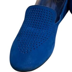 Arche FANHOO loafers, specifically in a blue color. These slip-on shoes are known for their comfort and design, featuring a finely perforated nubuck leather upper for breathability and flexibility. handcrafted in France and incorporate 100% natural latex cushioning for durability, flexibility, and shock absorption. The brand emphasizes a rich color palette beyond traditional black and brown, aligning with current fashion trends