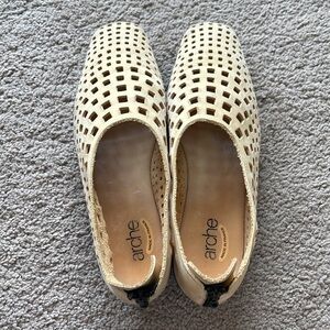Tags: bohemian, boho, leather, suede, shoes, flats, loafers, cutouts, stylish, French, Parisian, cottagecore, artsy, arche, butter yellow, closet staple, capsule wardrobe, office, business, career, brunch, travel, vacation, women’s, low heel, classic, neutral, quality