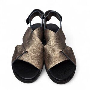 Arche Vayest Metallic Gold Crossover Leather Sandals Women's Square Heel Glam 36