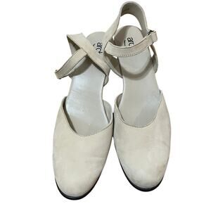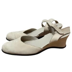 Arche Women's EU 41/ US 10.5 Cream Nubuck Suede Low Wedge Slingback Pumps