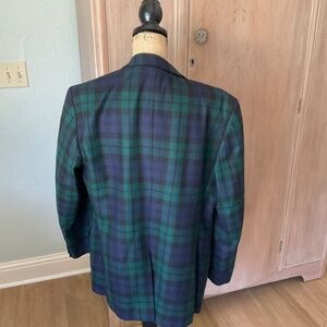 Lovely classic on trend navy blue and hunter green black watch plaid tartan blazer sports coat.