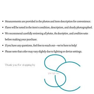 Please see photos for measurements & detailed conditions. Any flaws will be noted and flagged.