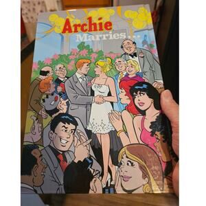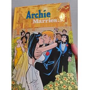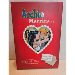 Like New Hardcover book collects Archie Wedding, explores BOTH universes, Marries Veronica and Marries Betty, in One volume. Has Slipcover, includes bonus features rom 40's, 50's ,and 60's. plus behind-the-scenes sketches, character designs and creator interviews. No rips, tears, or smells. Will Mail media or Ground, whichever is less.