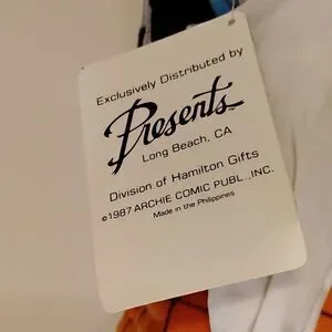 Approximately 18" tall. Poor Archie was stuck awkwardly in a box and his head is a little dented in as well as his neck leans to the side. No rips tears or stains. Smoke free/Dog friendly home. Has original tag but not any original packaging otherwise.
