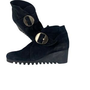 Archies 41 US 9 Black suede booties w/lug soles , silver tone buckle