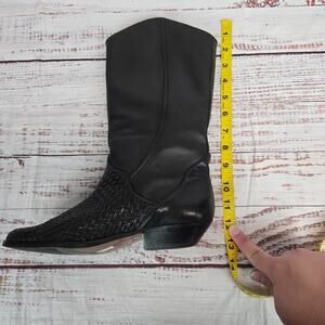 Architect Black Leather Ellis Boots Size 6.5M Pull on Woven Mixed Weave Western