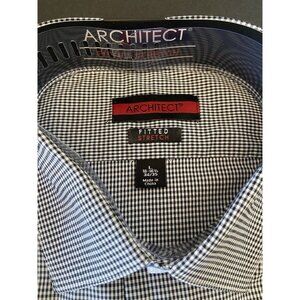 Architect Fitted Stretch long sleeve button down shirt black white gingham check men's L 16-16.5 34/35