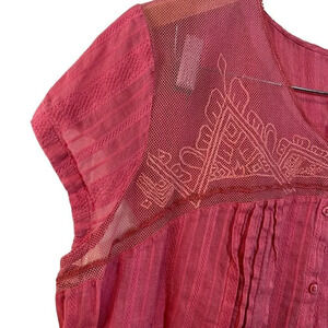 Architect Pink Blouse Plus Size 2X Mesh Lace Embroidered 100% Cotton Button Up