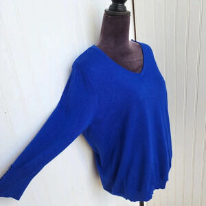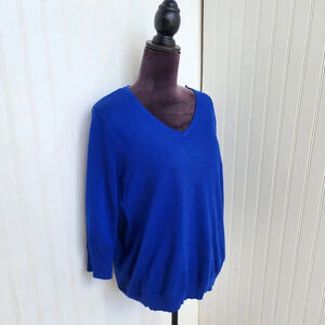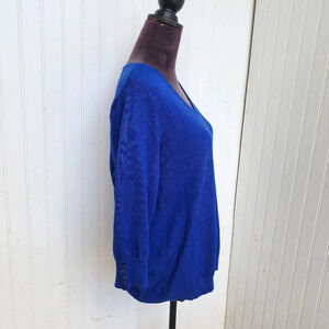 Architect Women's Blue Knit Rayon 3/4 Sleeve Pullover Sweater Stretch V-Neck 1X T9