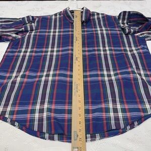 Architect XL l/s button down in plaid blue,red, purple, and tan. 55% cotton