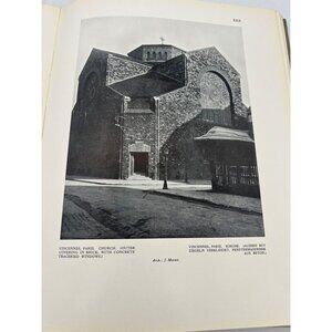 Hardcover 1927 edition of Architectural Design in Concrete by T.P. Bennett, published by Oxford University Press (American Branch, New York), with photographic plates compiled by F.R. Yerbury. This visually rich volume includes 100 full-page black-and-white architectural photographs showcasing early 20th-century concrete design from Germany, France, United States, and England. Buildings featured include Breslau’s Centennial Hall, Paris churches, and Welwyn Garden City housing. Includes work by notable architects such as Max Berg, J. Marast, Curt von Brocke, and L. de Soissons. The clothbound cover has visible wear and a few scuffs, and the pages show foxing throughout, especially near the front matter. Structurally sound binding. A rare and important early volume for collectors of architectural history or modernist design.