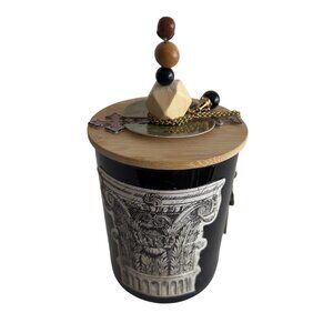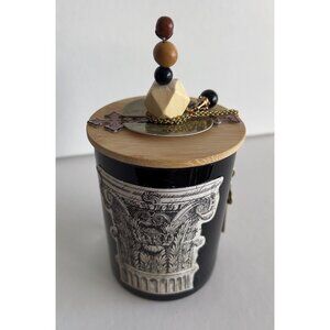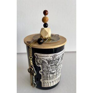 Architecture Classic Column Glass Jar, Jewel Encrusted Lid Ball Tassle Vanity Jar Jeweled Ornate Trinket Keepsake Jar Unique One of A Kind Art Assemblage