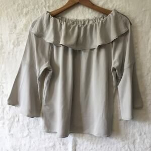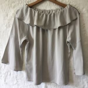 This elegant off-shoulder top features a stylish ruffle design, perfect for any occasion. The soft gray color adds a touch of sophistication to your wardrobe.